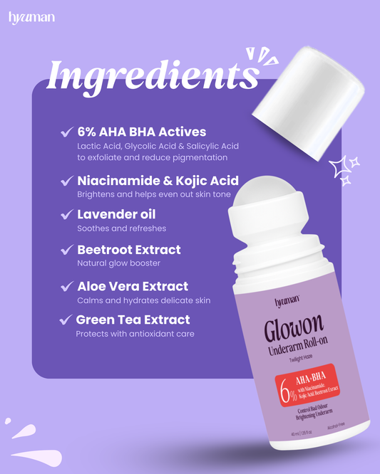 GlowOn 6% AHA BHA Roll-On 40ml + Mini Body Razor for Women